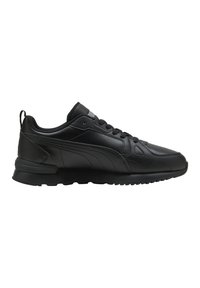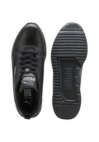 Baskets basses Puma noires avec tige en cuir, fermeture à lacets et semelle texturée, vues de côté sur fond blanc.