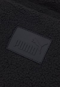 Sac fourre-tout en polaire noire avec deux poignées, forme rectangulaire, et une petite écusson logo Puma au centre avant.