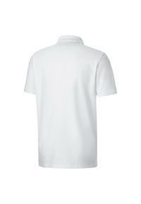 Polo blanc en coton avec un col classique, des manches courtes et un logo "PUMA" noir sur la poitrine gauche. Design simple, sans motifs.