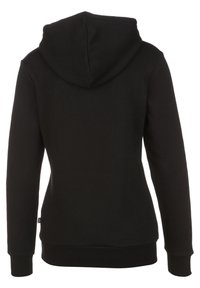 Sweat à capuche noir avec logo Puma doré et texte, capuche avec cordon et poche kangourou à l'avant.