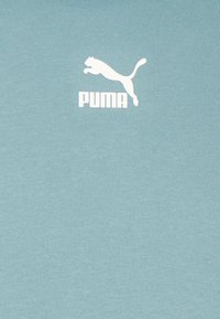 Sweat à capuche Puma vert tilleul clair avec poche kangourou à l'avant, capuche à cordon de serrage et petit logo Puma blanc au centre de la poitrine.