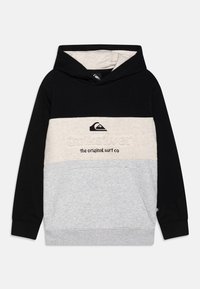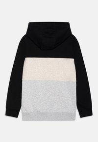 Sweat à capuche en bloc de couleurs noir, beige et gris, en mélange de coton, avec une poche kangourou avant et un logo brodé sur la poitrine.