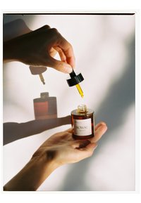 Le soir, après avoir nettoyé et tonifié la peau, réchauffe 3-4 gouttes de sérum dans les mains et masse sur la peau humide jusqu'à absorption complète. Ce sérum de nuit contient des huiles essentielles qui peuvent être très photosensibles.