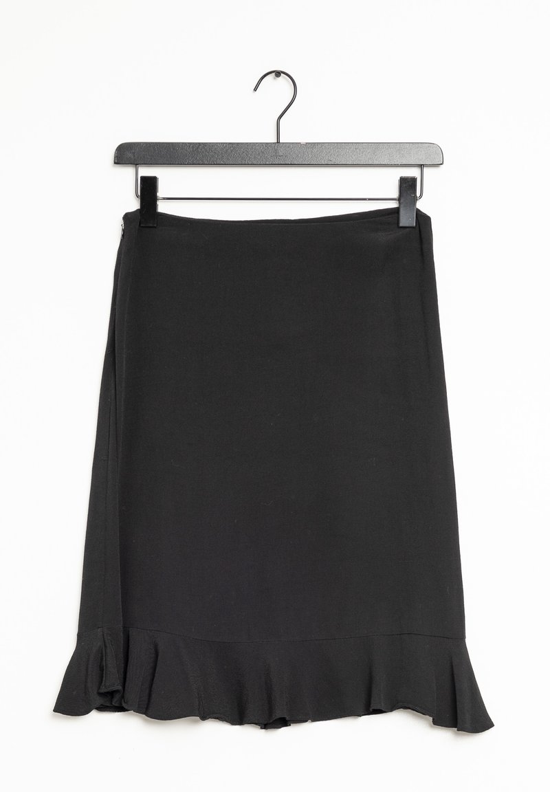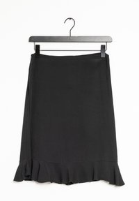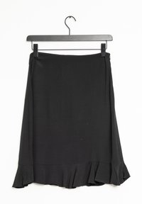 Jupe noire longueur genou en tissu doux, avec un volant évasé à l'ourlet et une ceinture lisse avec une fermeture éclair latérale.