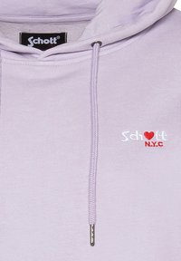 Sweat à capuche violet clair avec poche frontale, cordons de serrage, et petit logo "Schott N.Y.C" avec un cœur rouge sur la poitrine.