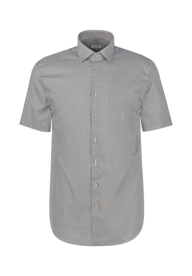 Chemise à manches courtes avec un motif à carreaux noir et blanc, fabriquée en tissu respirant. Dotée d'un col classique et d'une poche poitrine.
