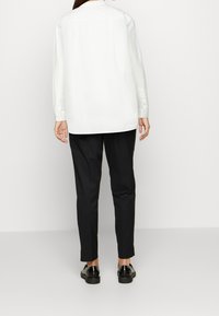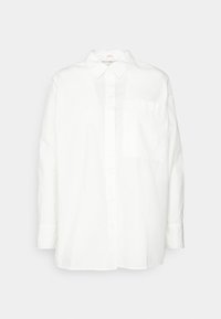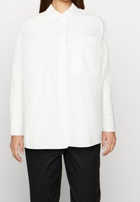 Chemise blanche à manches longues en coton, avec un col classique, une fermeture à boutons à l'avant et une poche poitrine. Texture lisse, coupe décontractée.