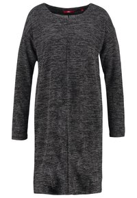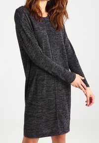 Robe en maille gris foncé à manches longues, coupe décontractée, avec une texture subtile et un détail de couture latérale.