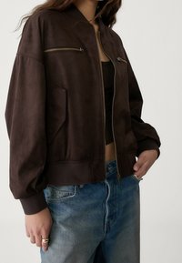 StradivariusSeconde main Veste en similicuir - dark brown
