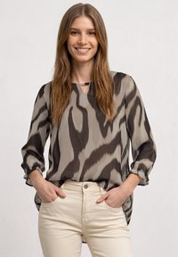 Street OneBLUSE MIT SPLIT NECK UND ANIMAL PRINT - Blouse - timeless beige