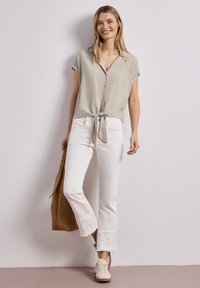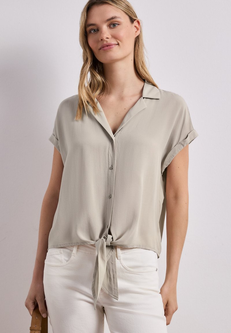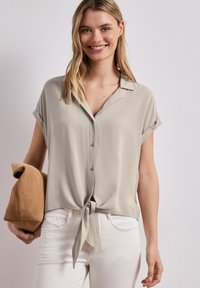 DROPPED SHOULDER BLUSE MIT BOWLING-KRAGEN - Chemisier - timeless beige