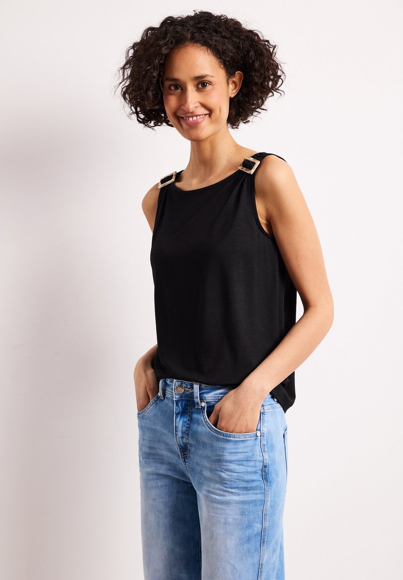 TOP MIT RUNDHALS UND SCHULTERDETAIL - Débardeur - black