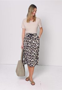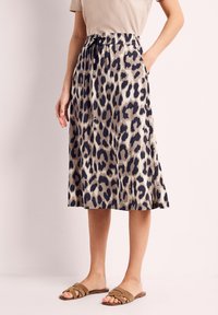 MIDI-ROCK MIT ELASTIKBUND UND PRINT - Jupe trapèze - timeless beige