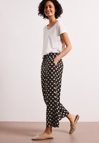 HIGH WAIST WIDE LEG HOSE MIT PRINT - Pantalon classique - soft beige