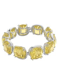 Bracelet en argent avec de grandes pierres précieuses jaunes taillées en coussin, disposées en un ensemble lié avec une fermeture à boucle.