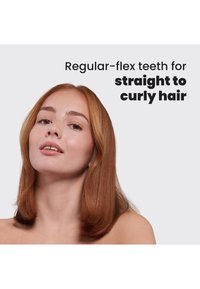 La poignée ergonomique offre une prise sûre et confortable. Peut également être utilisé sur cheveux secs pour améliorer douceur et brillance.