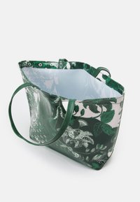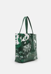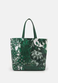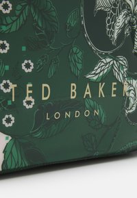 Sac tote à motif floral vert et blanc avec deux poignées et lettrage doré « Ted Baker London » à l'avant.