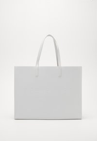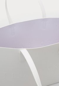 Sac fourre-tout blanc en matériau texturé avec le logo embossé "TED BAKER LONDON", équipé de deux poignées plates pour le transport.