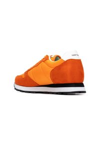 Baskets en daim orange et nylon avec un bout rond, cinq œillets, panneaux texturés, semelle en caoutchouc noire et détail blanc au talon.