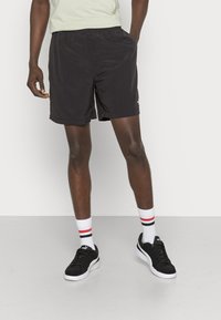 Shorts de bain noirs avec une ceinture élastique. Fabriqués en matière légère, ils disposent de poches latérales et d'un petit logo sur l'ourlet.