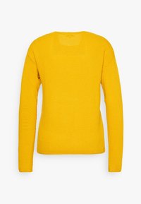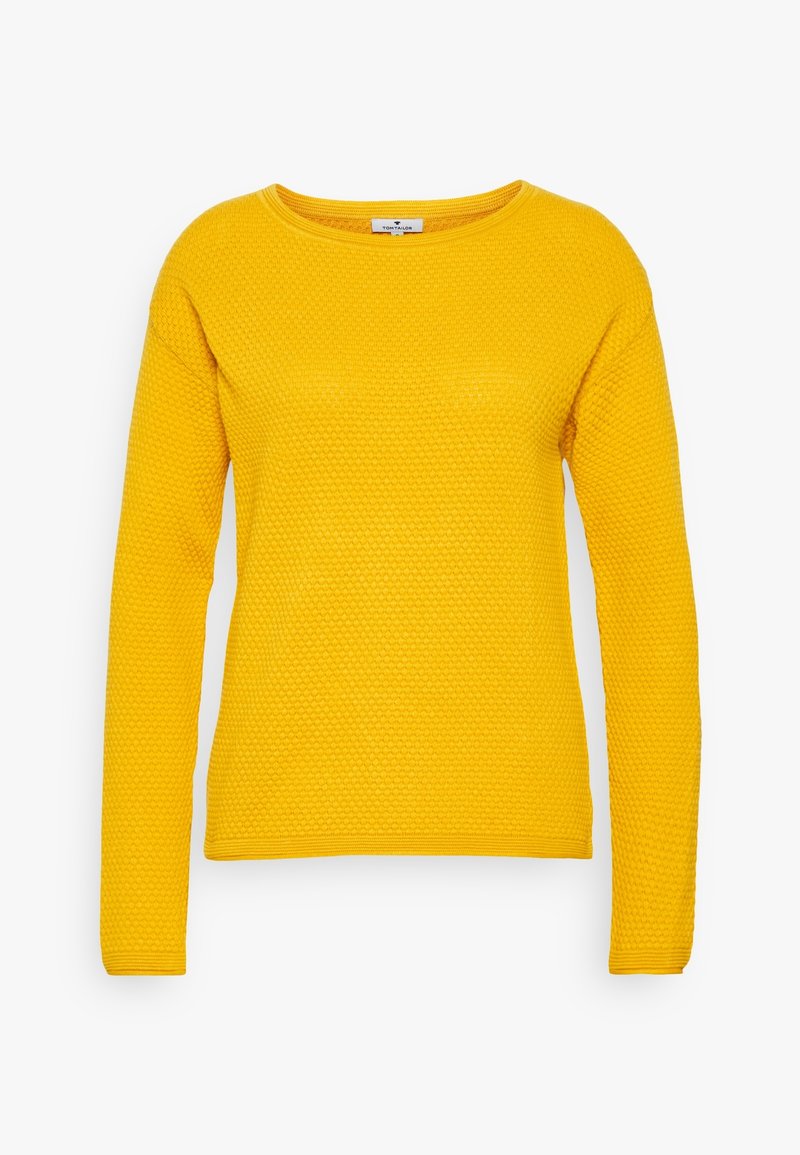 Pull jaune vif à manches longues avec un motif en maille nid d'abeille texturé et un col rond.