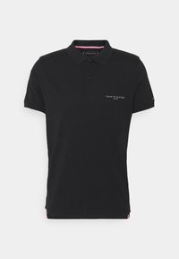 Polo noir en coton, avec un col à deux boutons et un logo sur la poitrine gauche. Manches courtes et coupe décontractée.