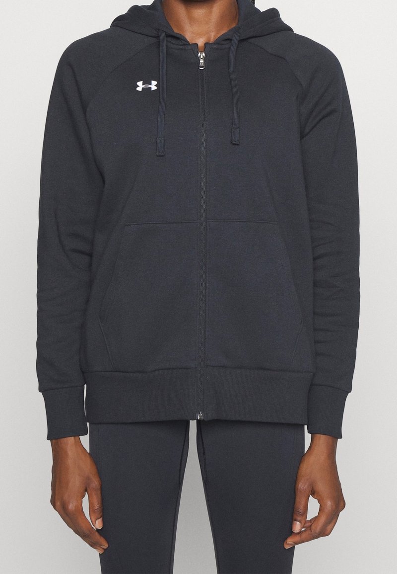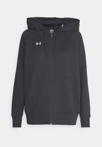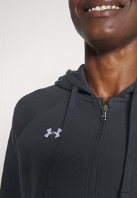 Sweat à capuche gris foncé en mélange de coton, avec fermeture éclair, capuche à cordon de serrage et poches kangourou à l'avant. Logo Under Armour sur la poitrine.