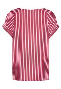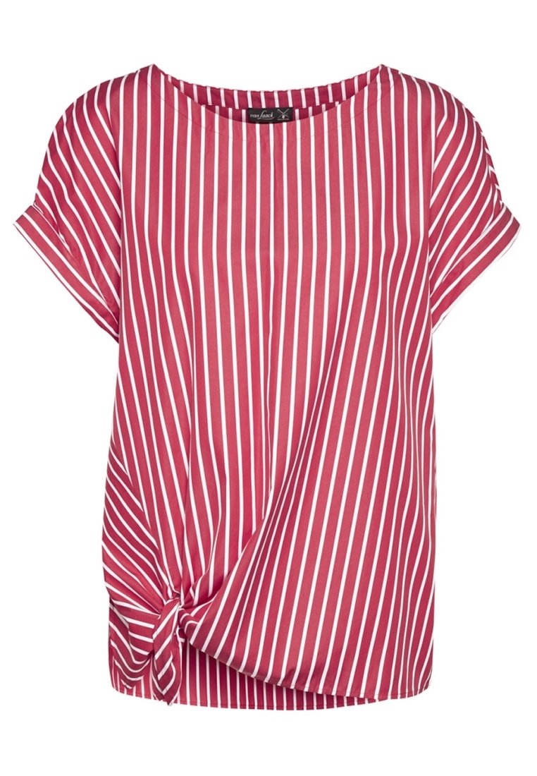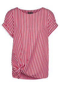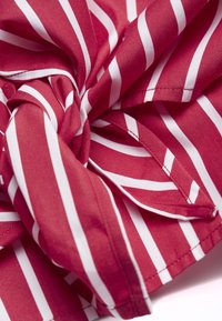 Haut à manches courtes rayé rouge et blanc avec un col rond et un détail noué à l'ourlet. Confectionné dans un tissu lisse et léger.