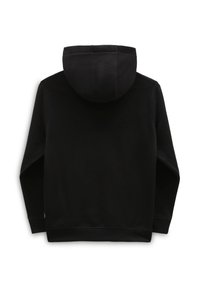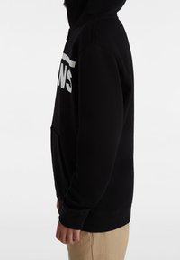 Sweatshirt à zip noir avec un grand logo blanc Vans sur la poitrine, doté d'une capuche et de poches avant, fabriqué en tissu doux.