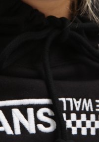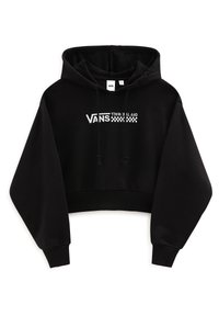 Hoodie noir cropped avec le logo Vans, associé à un legging noir avec une bande damier à la taille pour un look sportif.