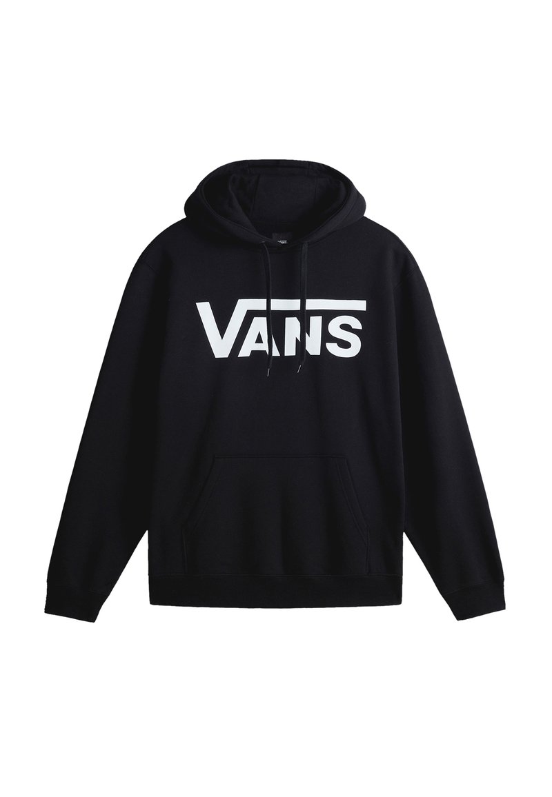Sweat à capuche noir en coton, avec un grand logo "VANS" blanc sur le devant, poche kangourou, et poignets ainsi que bordures côtelés.