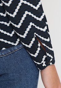 Haut à manches longues avec un motif cachemire en bleu, marron et blanc, doté d'un col montant et de poignets froncés. Confectionné dans un tissu léger.