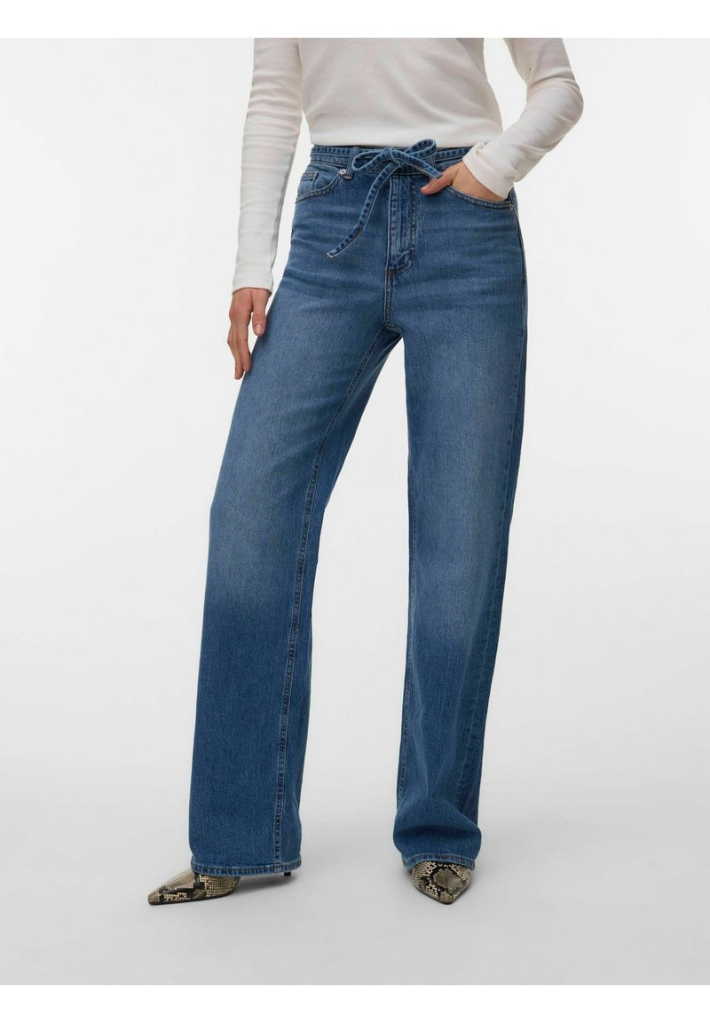 WEIT GESCHNITTEN VMTESSA HOHE TAILLE WEITER BEINSCHNITT JEANS - Jean droit - medium blue denim