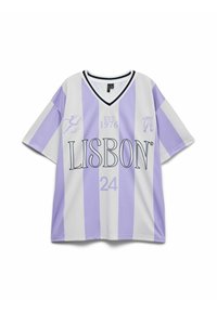 Ajoutez une petite touche d'originalité à votre look avec un T-shirt oversized. Le choix parfait pour les jours où vous voulez avoir du style tout en étant à l'aise. Associez-le à une mini-jupe et une paire de sandales pour un look estival facile à porter. - Type de produit: T-shirt - Col: Col en V - Manche: Manches 3/4 - Détails supplémentaires: Détail imprimé - Impression: Impression placée sur le devant du produit - Coupe: Coupe décontractée
