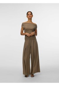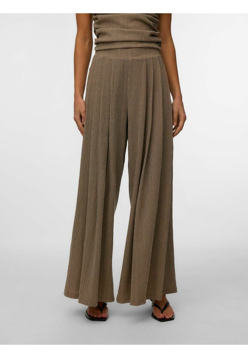 HOSE MIT WEITEM BEINSCHNITT VMKAYLA MITTLERE TAILLE HOSE - Pantalon classique - chocolate torte