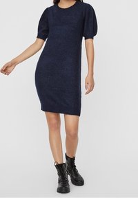 Vero ModaSeconde main Robe pull - dark-blue denim