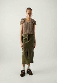 VINORA V NECK - T-shirt imprimé - toffee/white