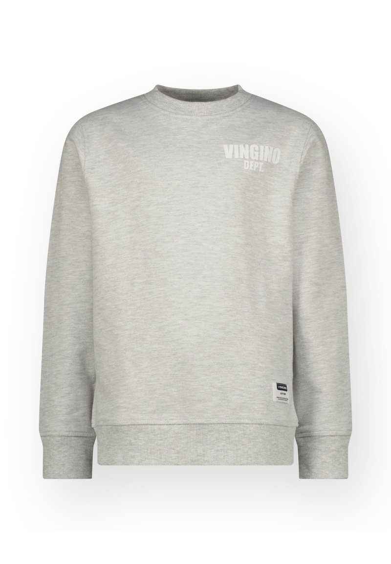 Sweat-shirt gris clair en tissu doux. Il comporte un col rond, des manches longues, et un petit logo "Vingino Dept." sur la poitrine.