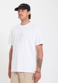 Caractéristiques : <br> T-shirt homme à manches courtes <br> Coupe ample <br> Col rond <br> Sérigraphie avant et arrière <br> Étiquette tissée à l'ourlet avant <br> Poids : 230 g <p> Référence : A5212616 NOWHERE SST</p>