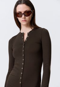 BUTTONED MINI DRESS - Robe en jersey - dark brown